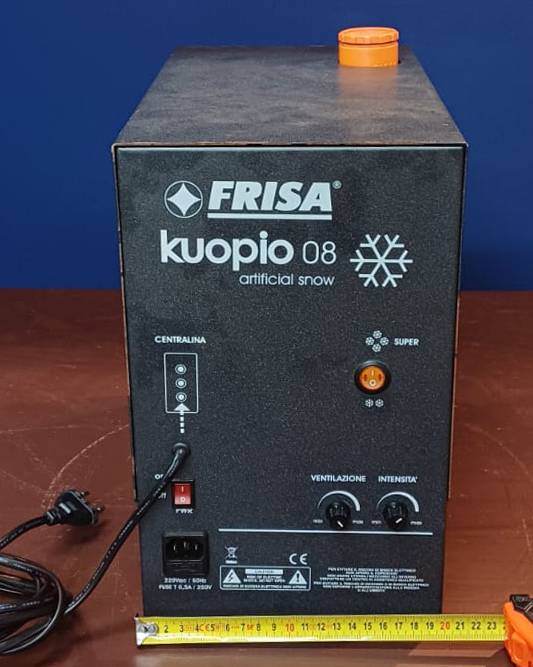 Alimentato a 220V, può essere gestito da qualsiasi centralina in uso nel presepio per sincronizzare la nevicata con la fase desiderata.