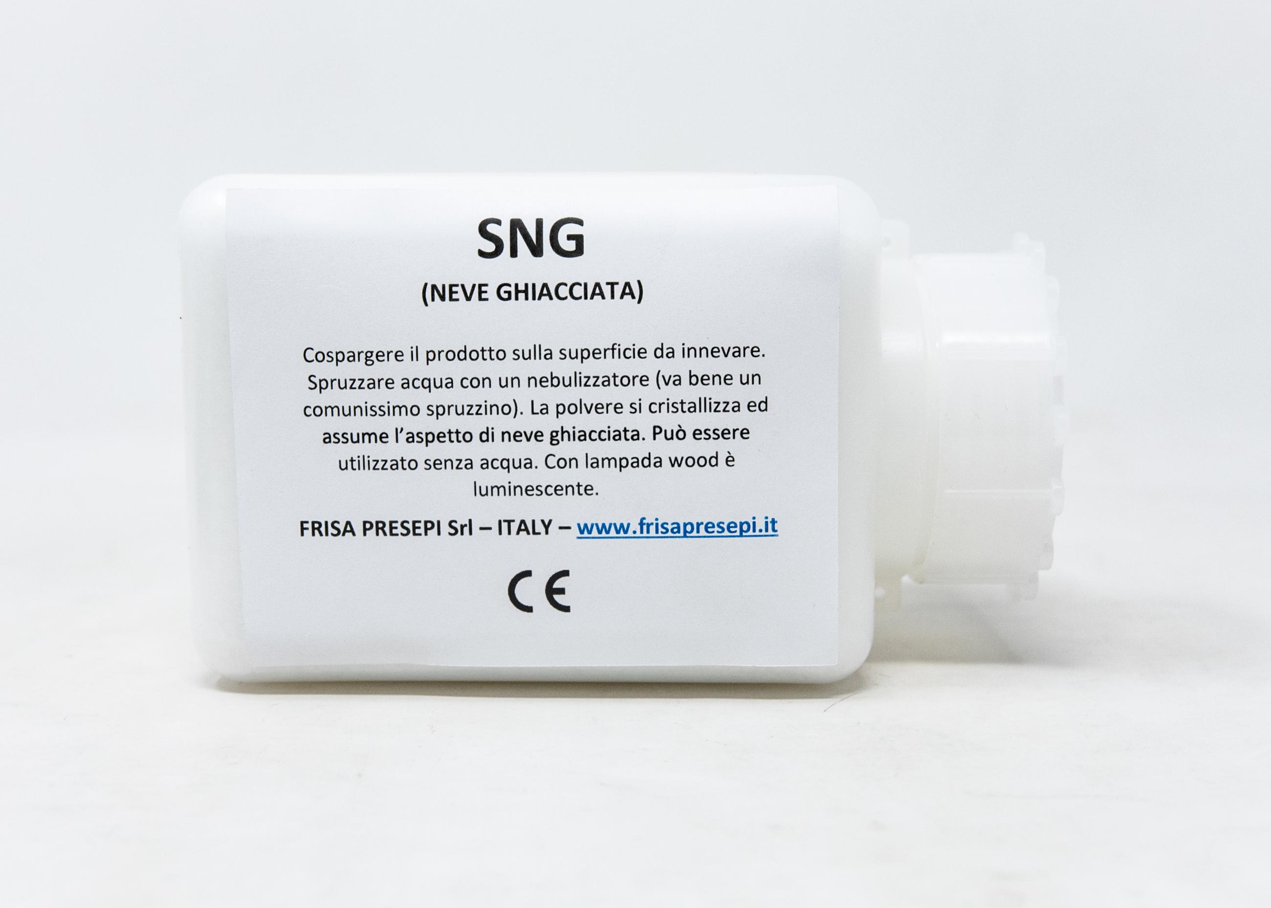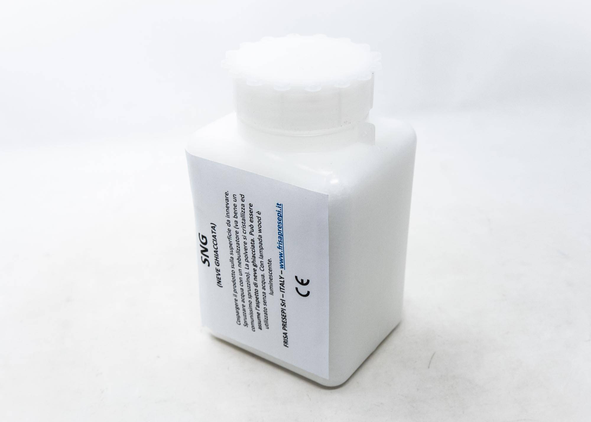 E' una sottilissima polvere bianca da cospargere sulla superficie che si intende innevare.