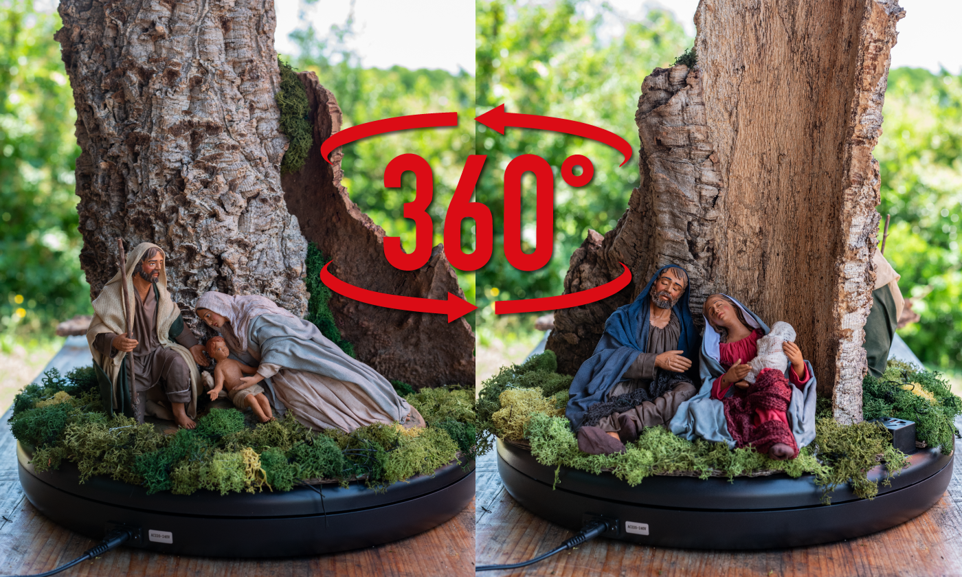 Ideali per allestire un angolo speciale di casa, arricchire un grande presepe o dare dinamicità a set fotografici e video, le piattaforme girevoli Frisa Presepi offrono versatilità e praticità in tre diverse misure.
