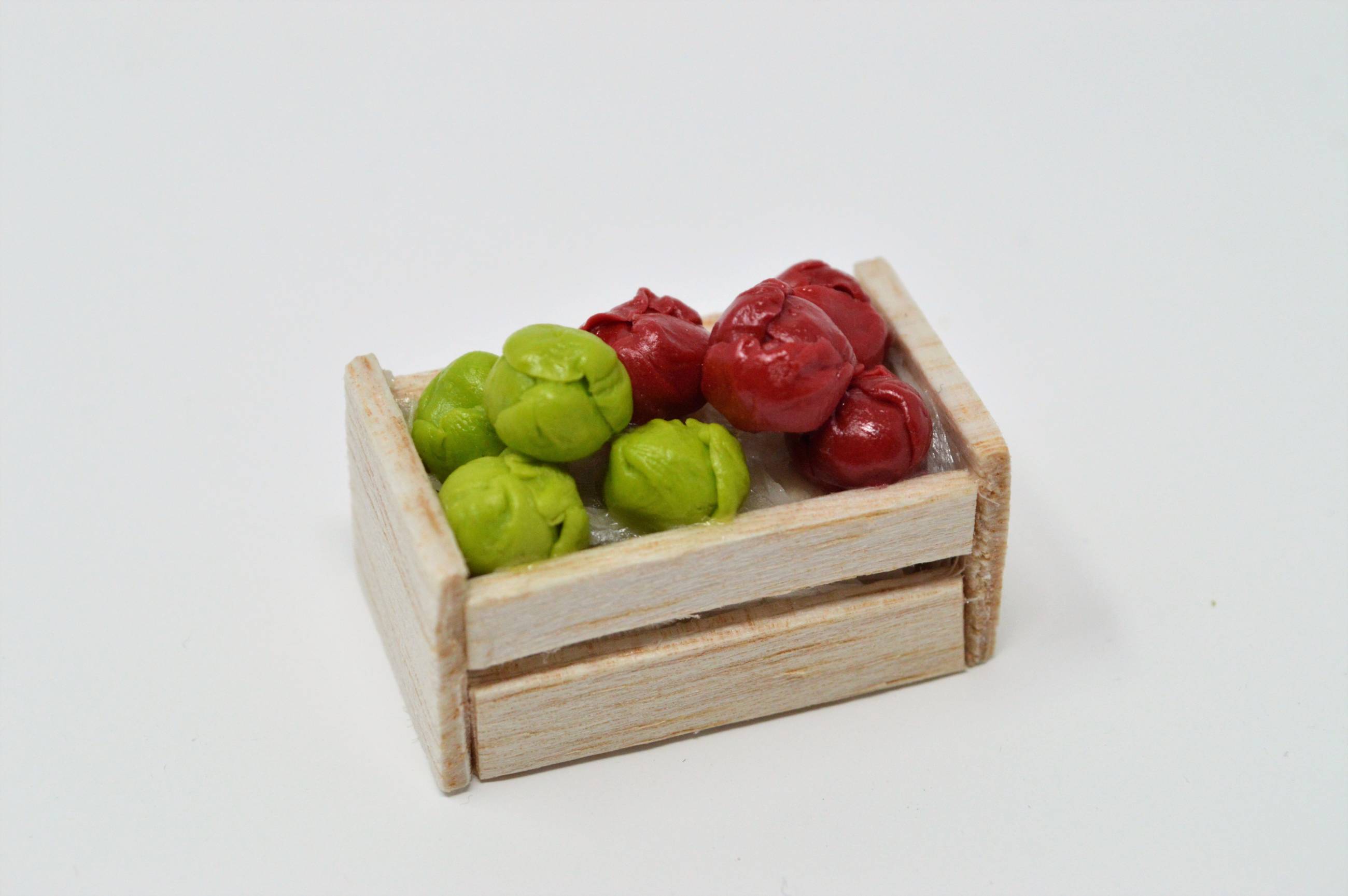 Caja de madera, verdura de resina