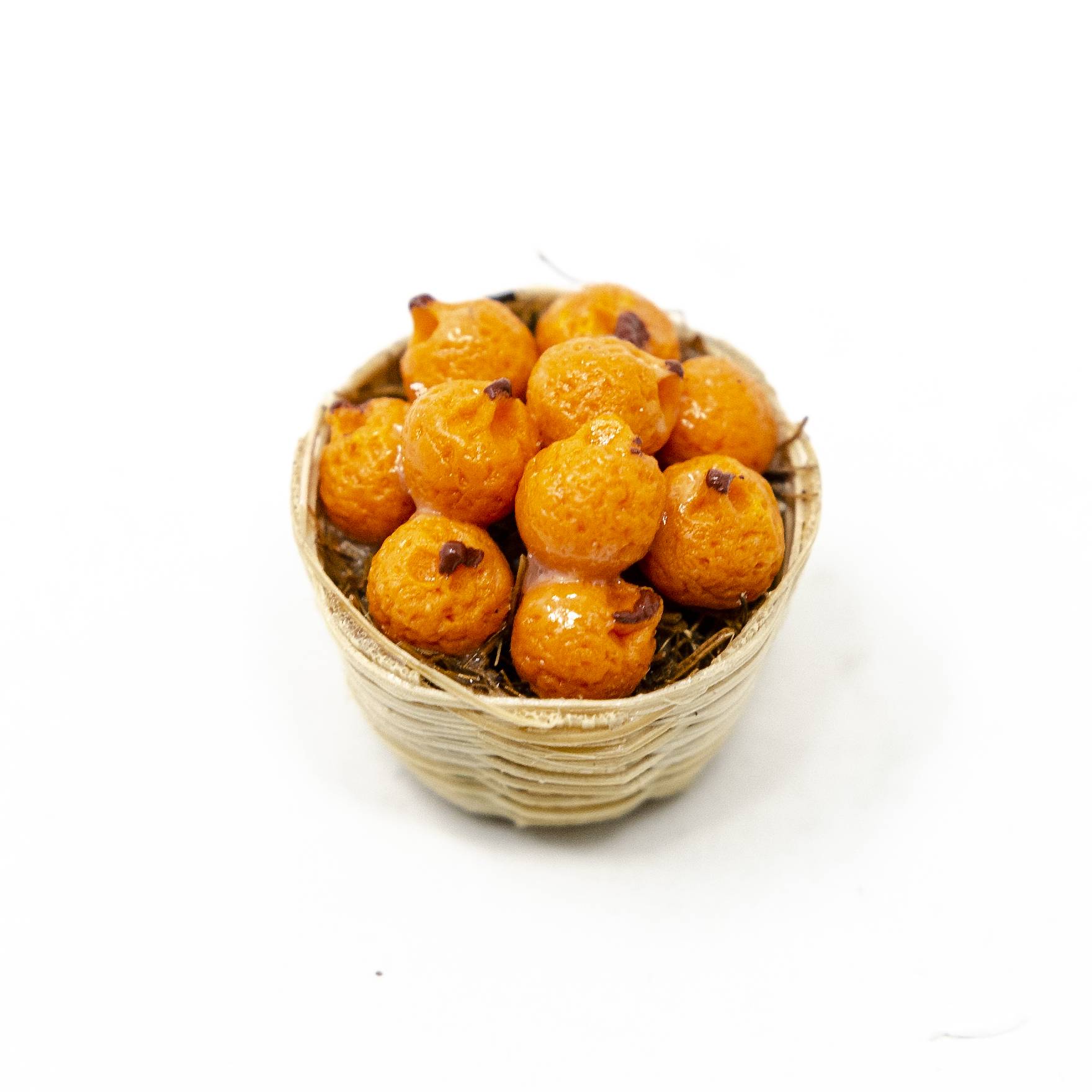 al 2,5 cm Cesta de mimbre, fruta de resina