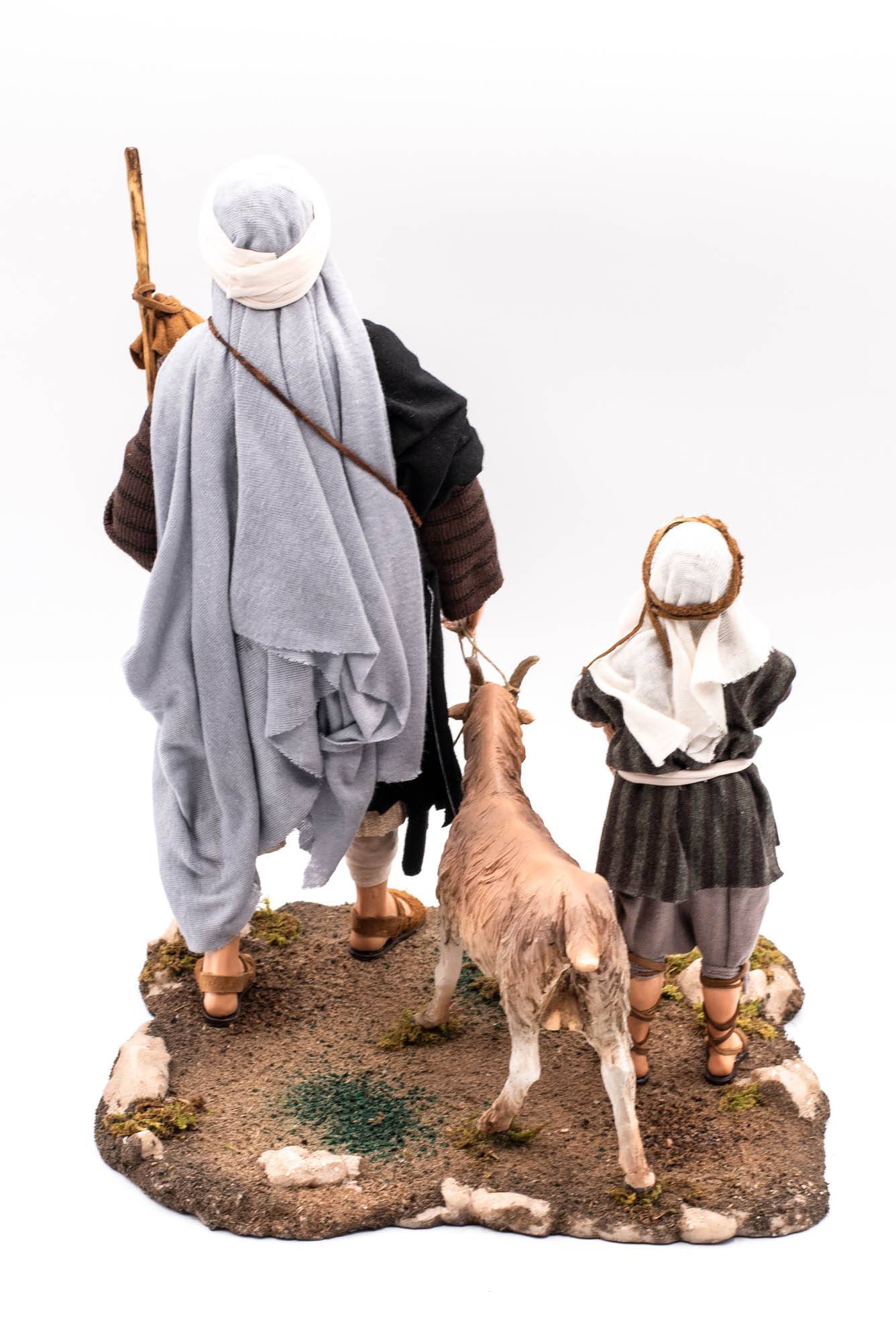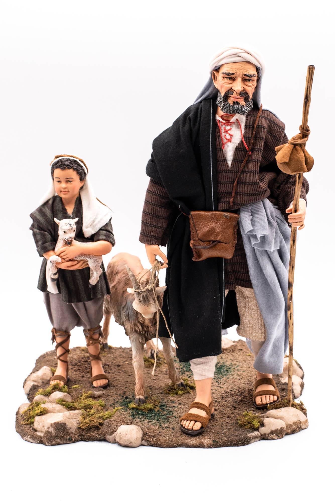 Hombre con niño y cabras