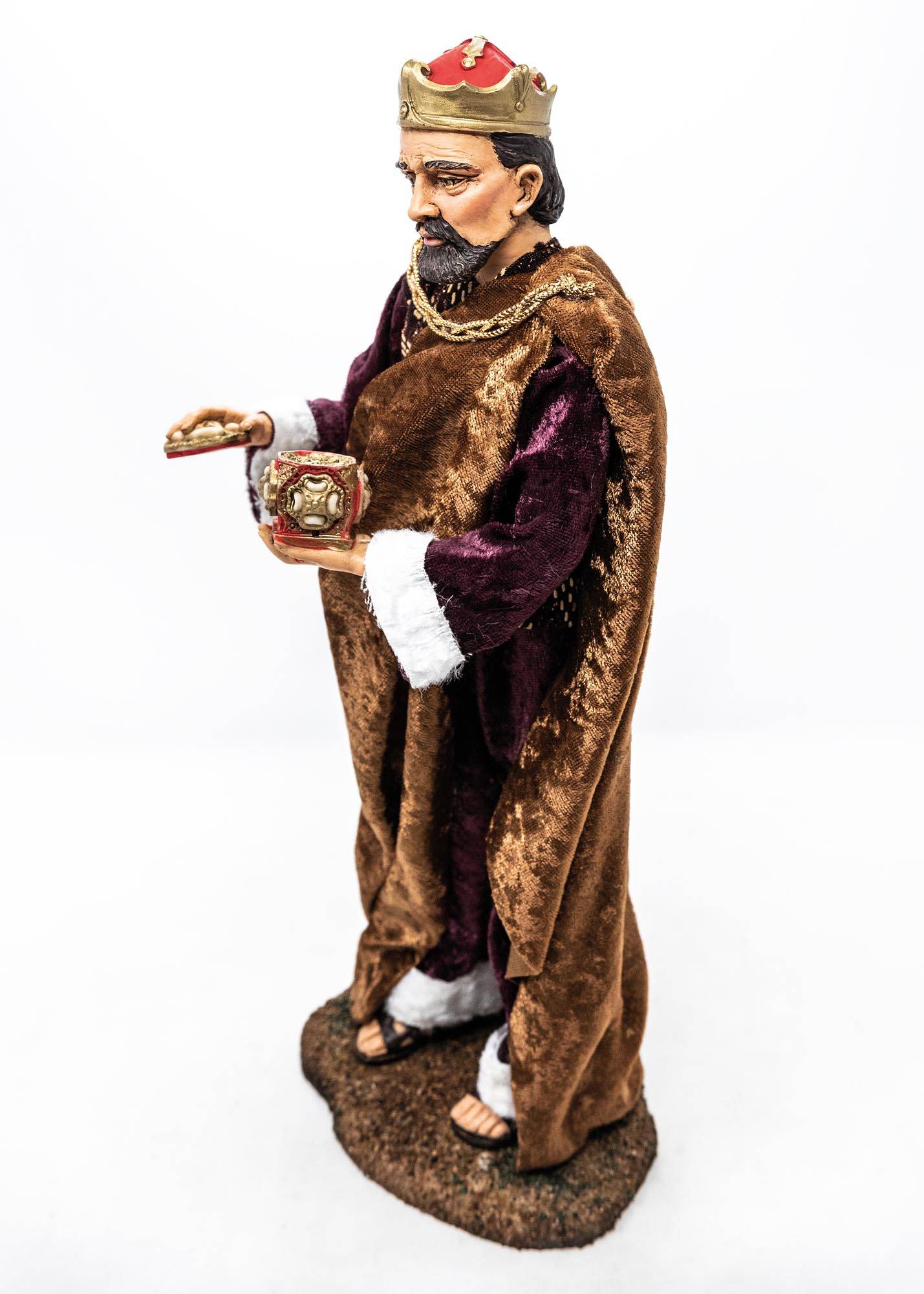 Figuras de resina vestidas a mano con telas de alta calidad; gran atención al detalle.