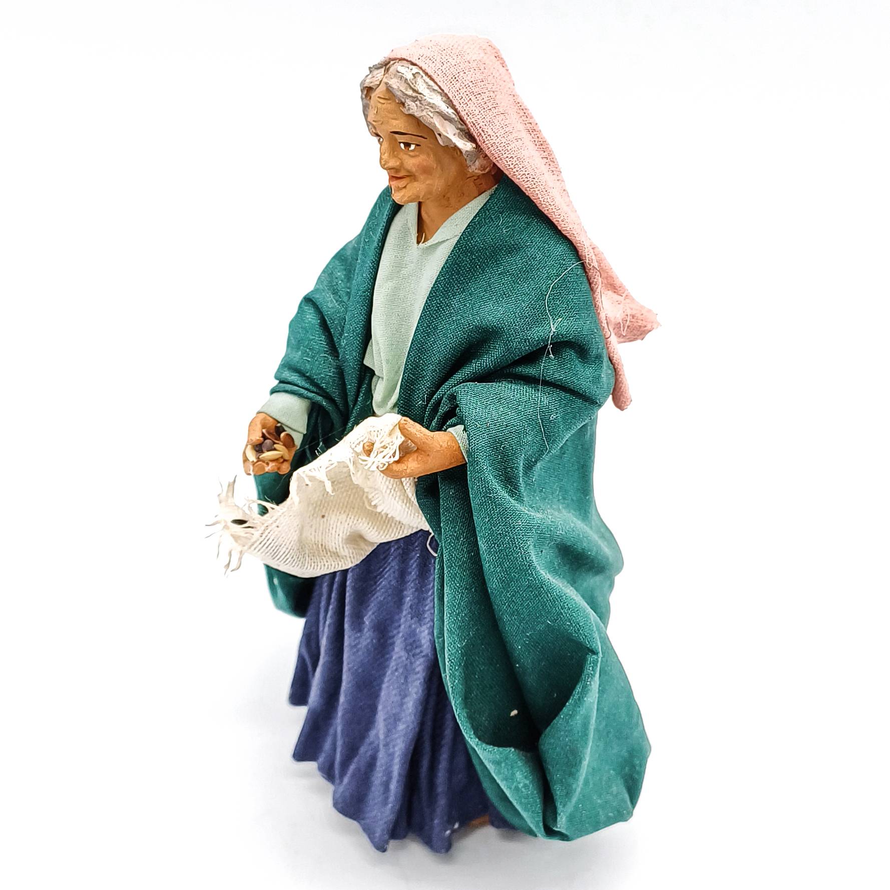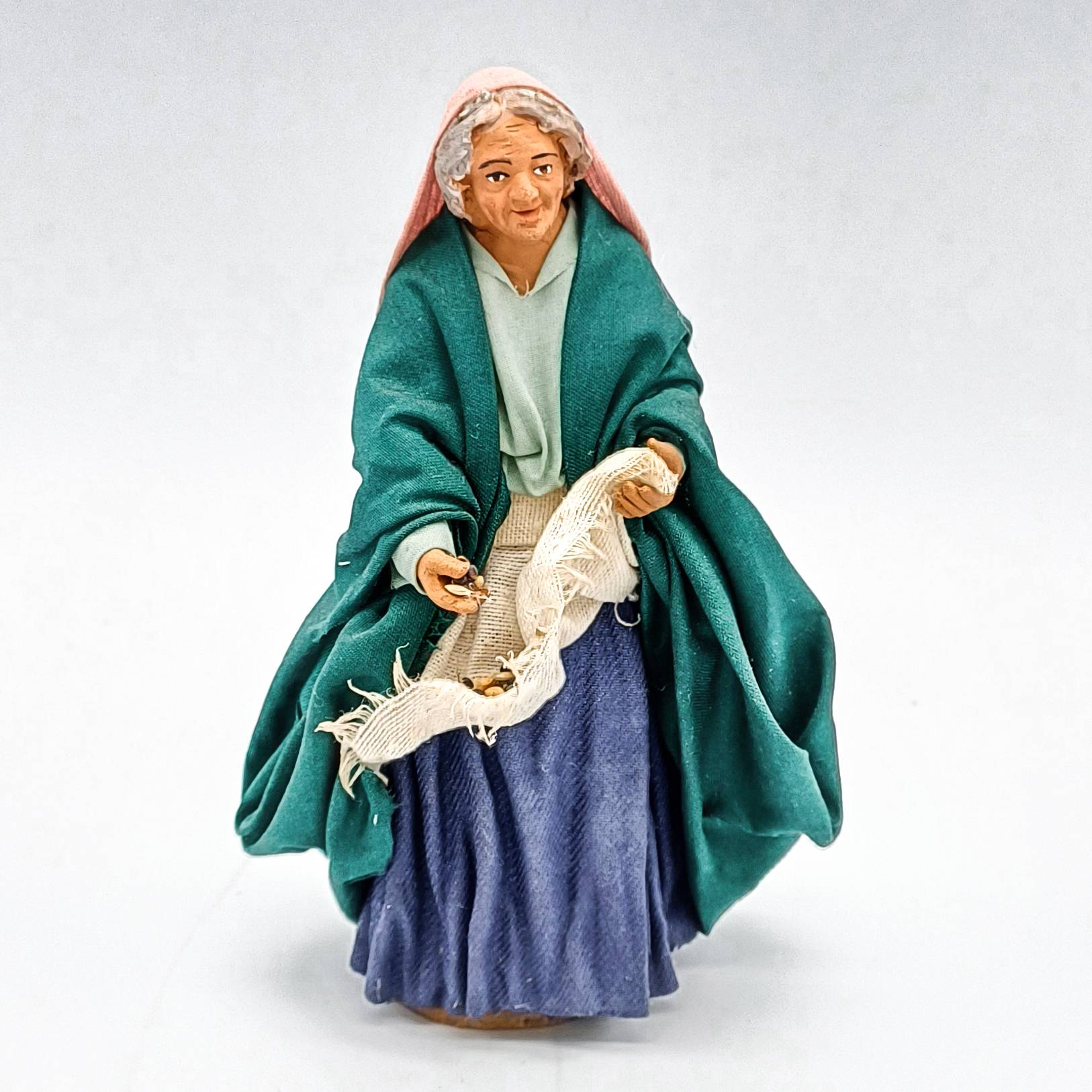 Figuras de terracota vestidas con tejidos de alta calidad, firmado por el Maestro Velardita. Rostros extremadamente refinados y gran atención al detalle.
