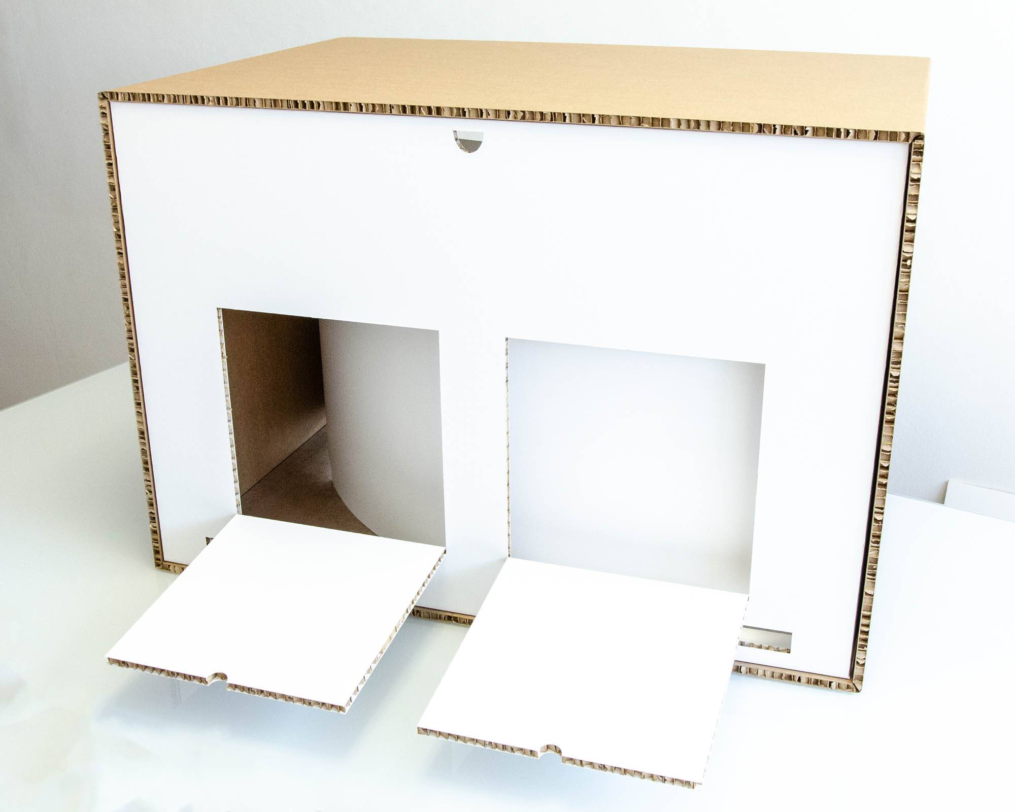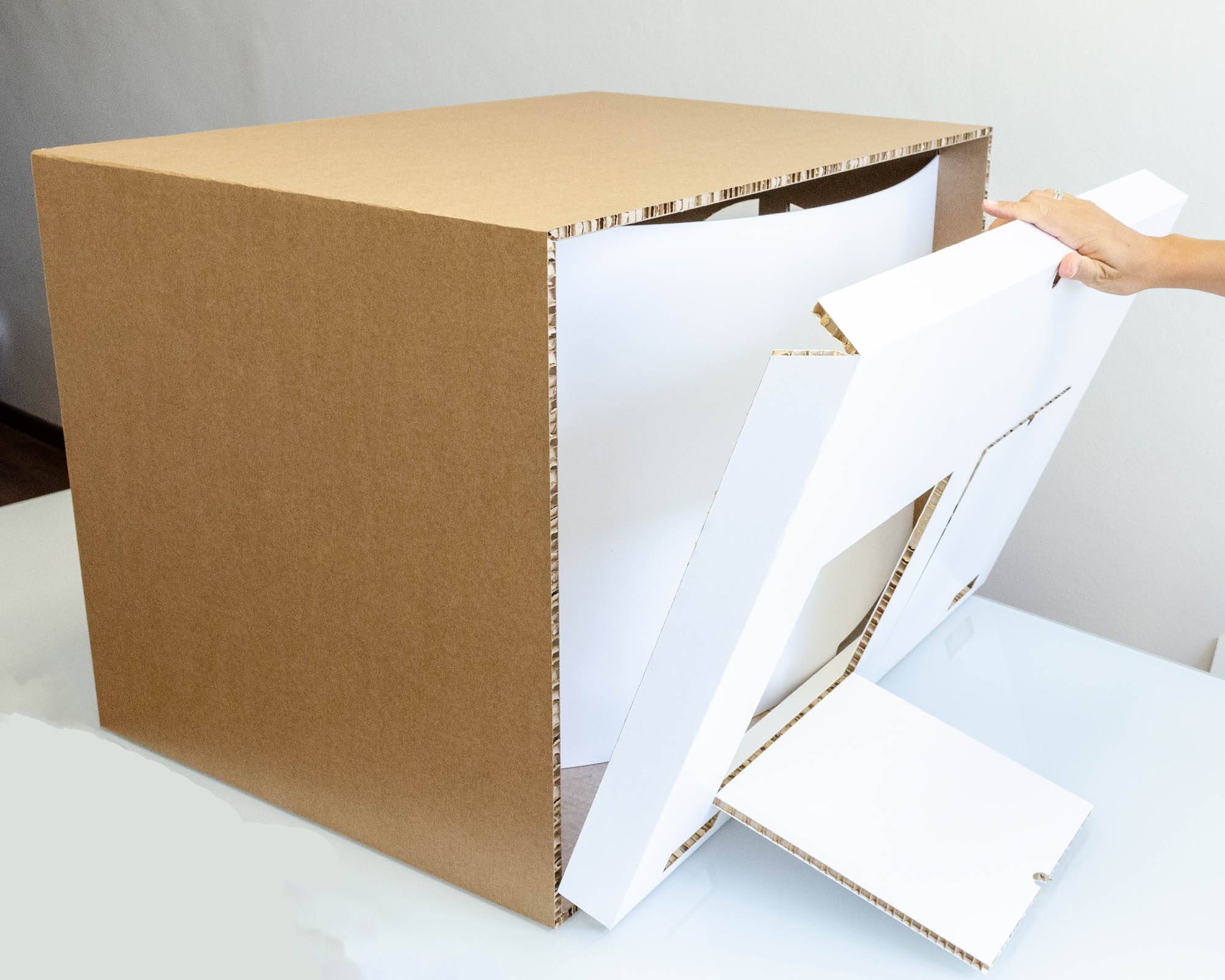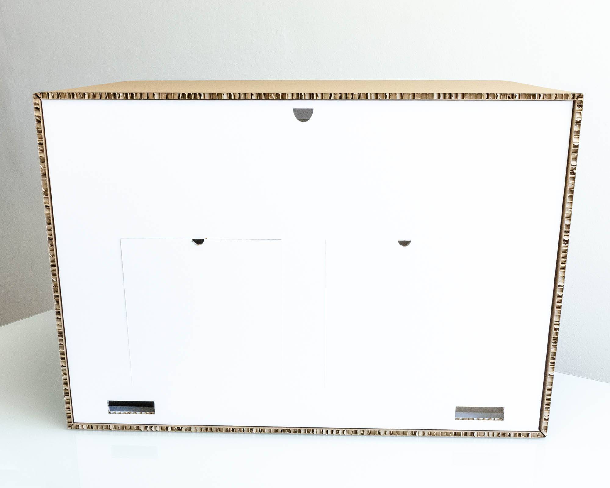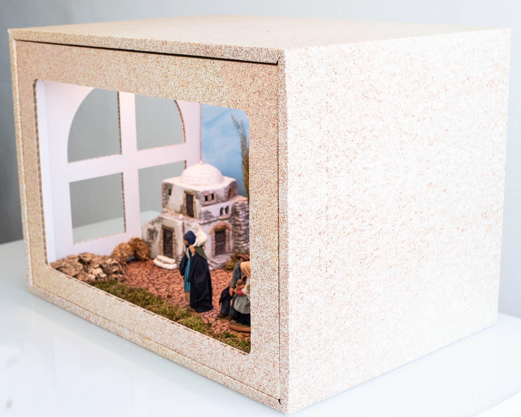 Componibile, riutilizzabile, sicuro e resistente. Dimensioni (L-P-H): 80x55x55 cm Pensato per i presepisti che vogliono realizzare un presepe completo utilizzando una struttura in cartone riciclabile che agevola il progetto. Permette di sfruttare al meglio illuminazione, centraline ed effetti e di raggiungere un risultato professionale in uno spazio casalingo. Il box è costruito con incastri che permettono un facile montaggio ed è dotato di viti per un solido fissaggio. Si può riporre e riutilizzare più volte. Il pratico cassettino sul retro consente di organizzare cablaggi, collegamenti e di avere il controllo su centralina ed illuminazione. La finestra laterale, posizionabile a destra o sinistra a seconda delle necessità, offre un ulteriore punto di osservazione, aumentando la percezione di profondità della scena.