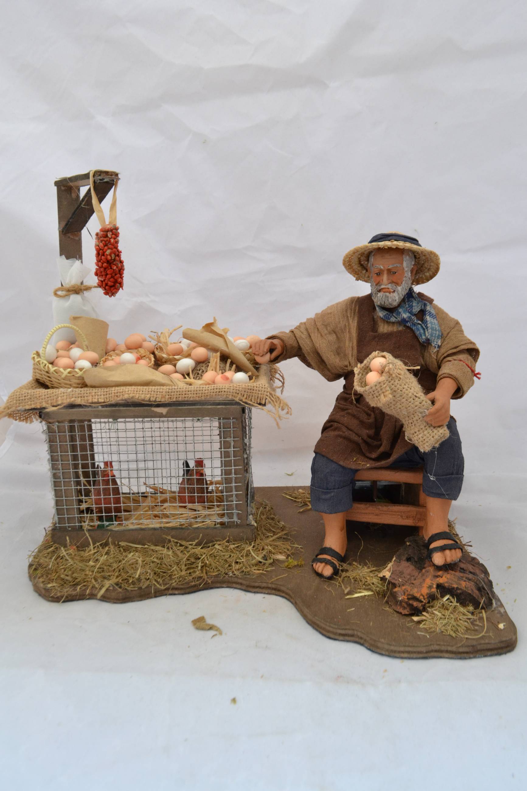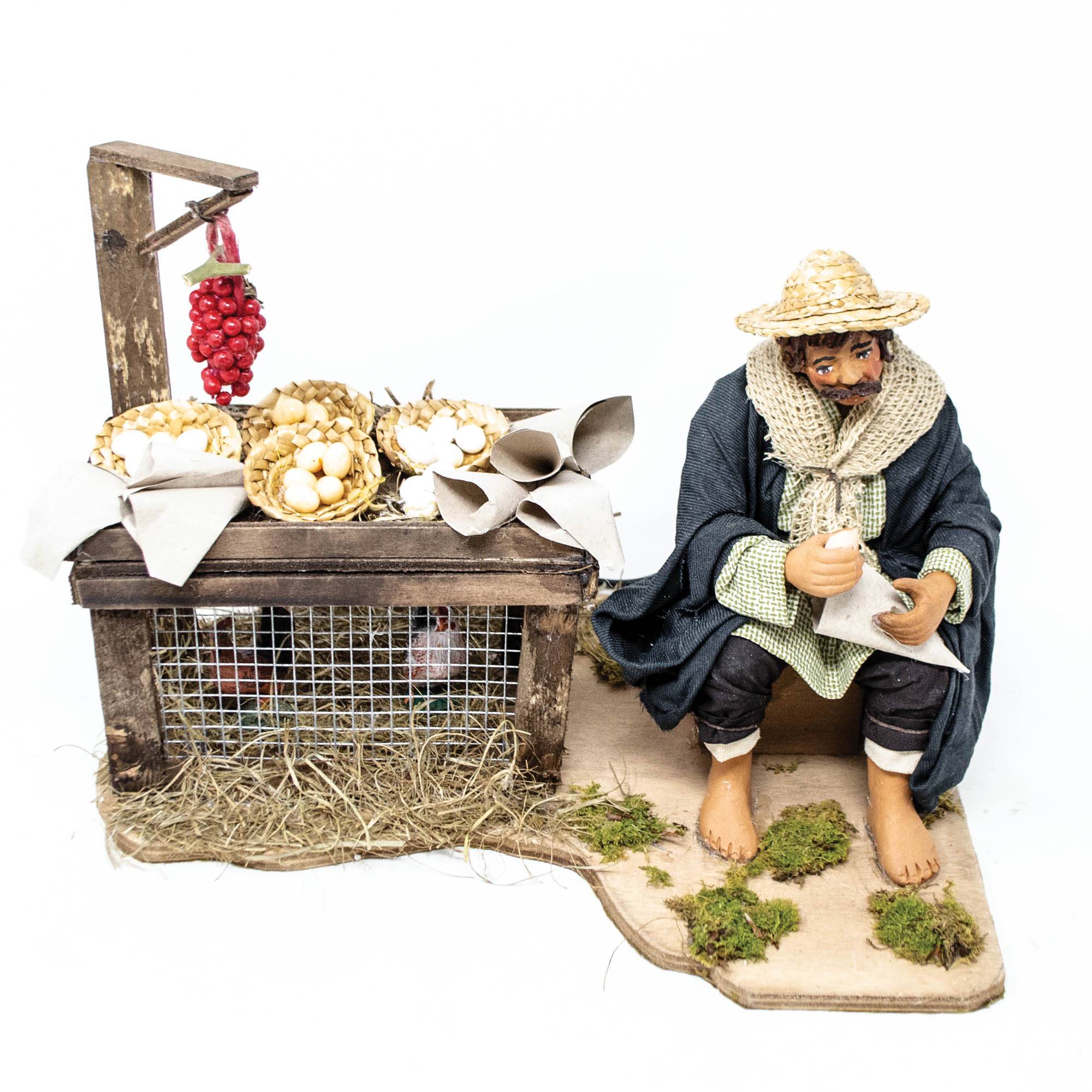 Venditore di uova seduto